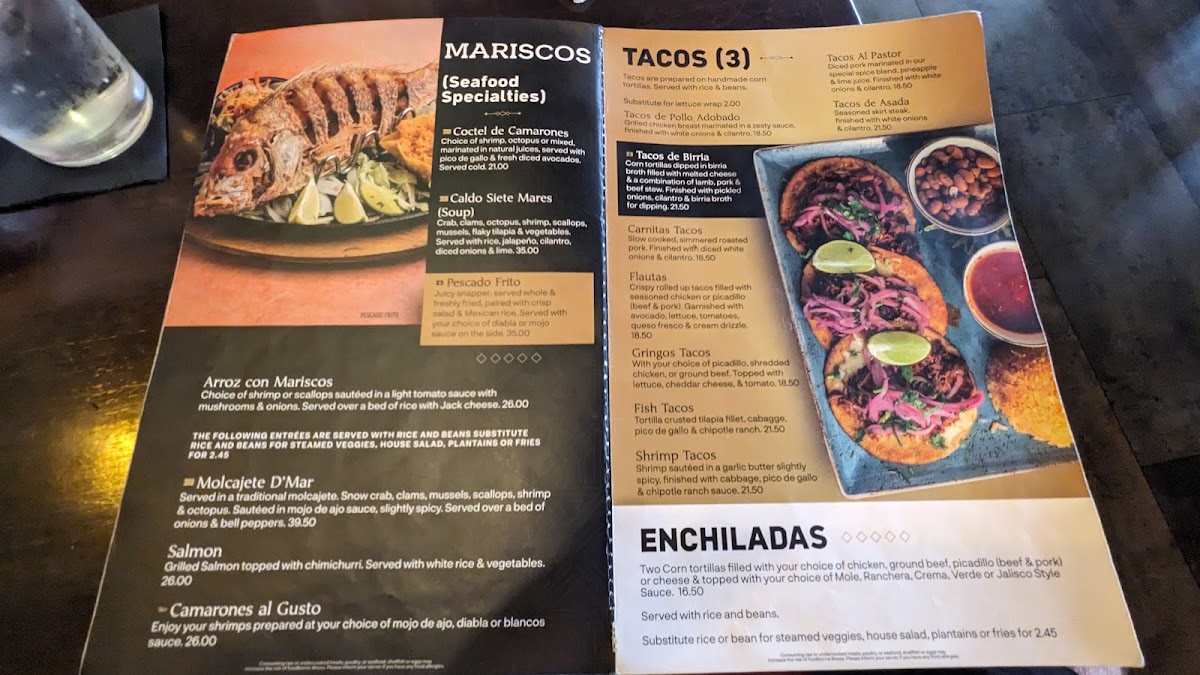 3 corn tortillas dipped in birria broth, filled with melted cheese & a combination of lamb, pork & beef stew. finished with onions, cilantro & birria broth for dipping.
