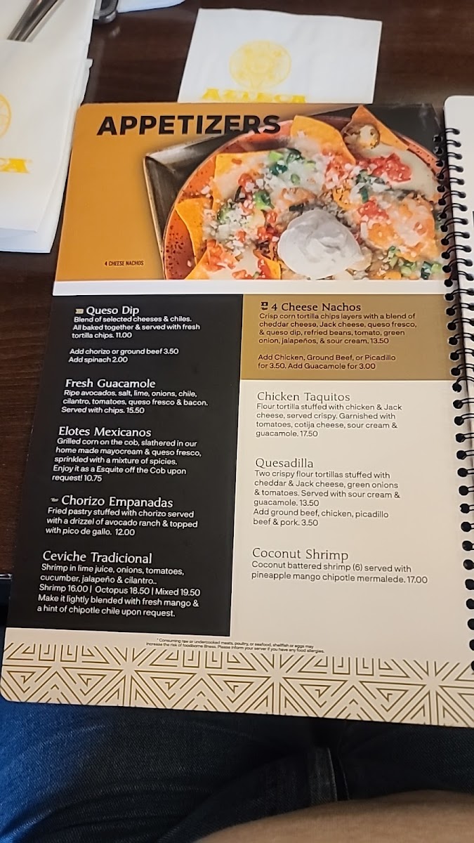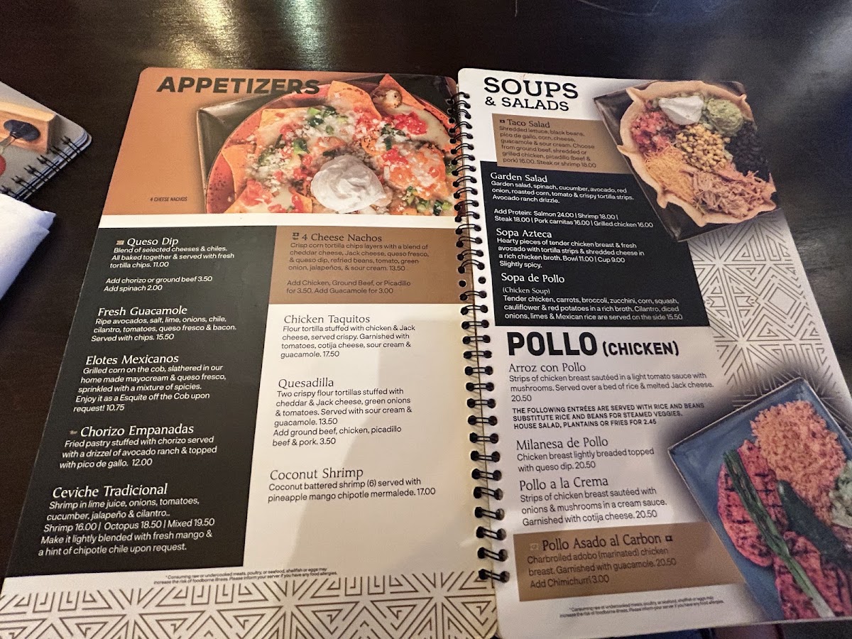 Azteca's award winning nachos! Crisp, corn tortilla chips topped with beans, jalapeños, and melted cheddar cheese. Garnished with tomatoes, green onions, sour cream and Quacamole.